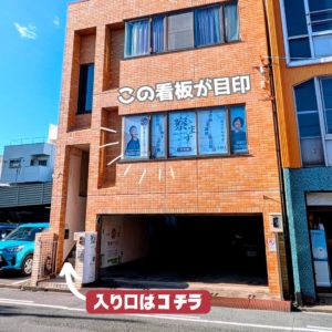 ※西駅のロータリーを右に来て頂くと、目印はTimesさんの隣・中華のみゆきさんの斜め向かいになります。(当店の看板もございます)建物右手の階段を登った2階が玄関となっております。