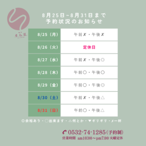 それ以外の時間帯で施術中の場合、お電話に出ることが出来ません。
