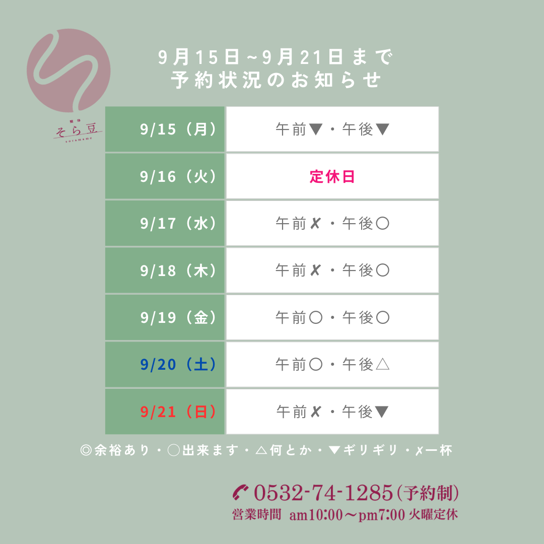 それ以外の時間帯で施術中の場合、お電話に出ることが出来ません。