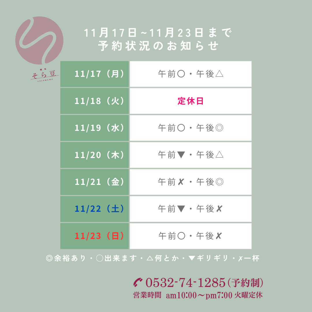 それ以外の時間帯で施術中の場合、お電話に出ることが出来ません。