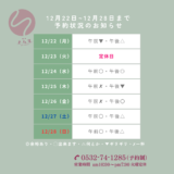 1月5日(月)・午前中は、埋まっております。午後は、13時から一部に空きがございます。